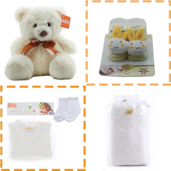 Our baby basket is an unique adorable and practical gift for new baby. It is be beautifully wrapped in Varity of style basket or box.